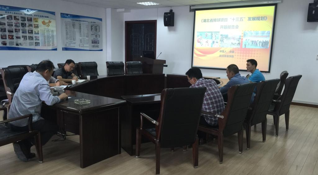 10月16日上午,我中心成员余银副教授主持的湖北省体育局指导性科研项目《湖北省排球项目“十三五”发展规划》在本中心会议室成功举行了开题报告会。湖北省体育局篮排运动管理中心、湖北省体育科学学会、我校科研处的相关人员以及本中心主任胡亦海教授也参加了此次开题报告会。会议中课题组对相关研究的整体设计、主体内容、人员分工、研究进展等进行了报告,并与课题组织方及主管方对具体研究内容、研究方法、后期工作等进行了讨论与交流。湖北省体育局篮排中心的领导对课题组的整体研究部署和研究进展给与了高度的肯定,并承诺对课题研究工作给予全力的支持。10月16日